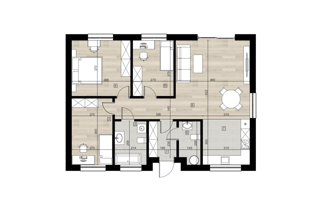 Parterowy budynek wolnostojący z garażem jednostanowiskowym o pow. 111 m2