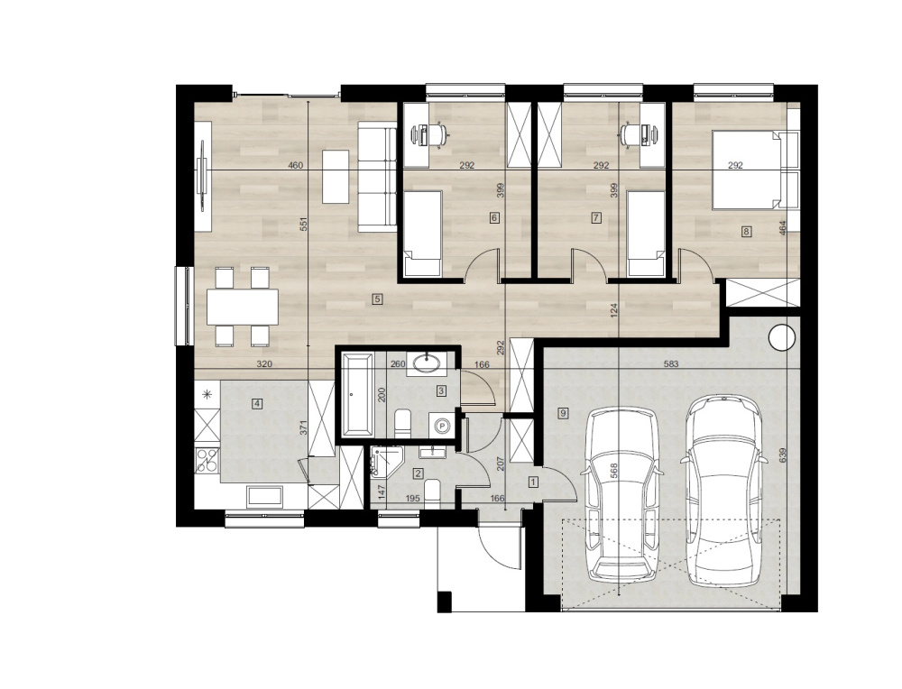 Parterowy budynek wolnostojący z garażem dwustanowiskowym o pow. 131 m2